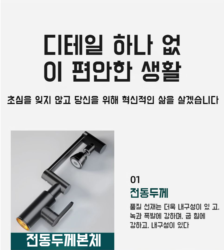 정동 스플래시 부스터 유니버셜 회전 수도꼭지 전체 모습