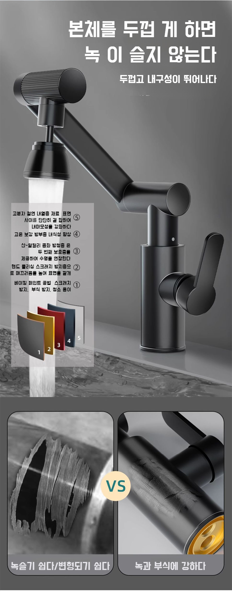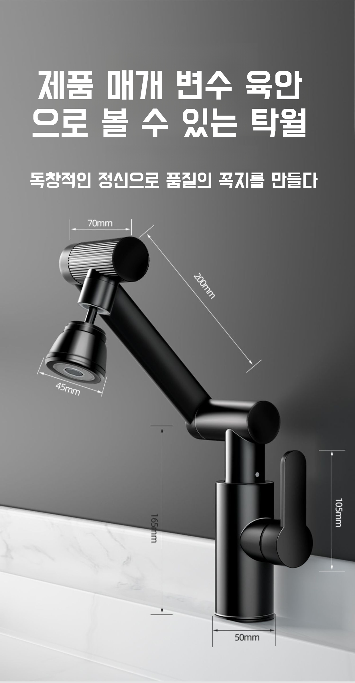 다양한 각도로 조절 가능한 로봇팔 수도꼭지